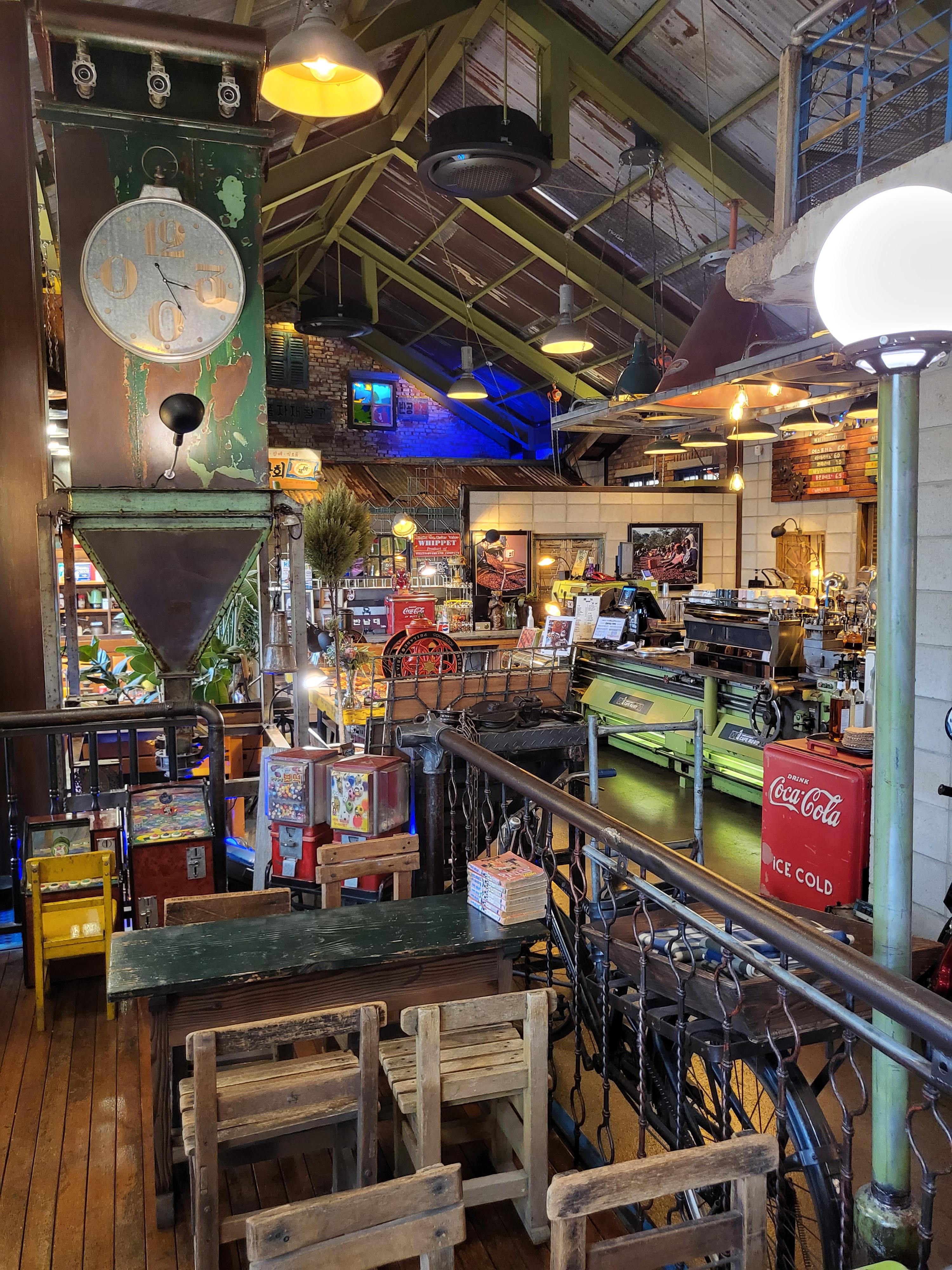 파주이색카페 케페제2공단은 레트로카페로 유명하다. 옛날 물건들이 많다. 엣날에 있던 다방도 꾸며져 있고 공장에서 일하는 아저씨들의 모습이 꾸며져 있다. 오래된 TV와 풍금, 가방등 옛물건으로 부터 향수를 느낄 수 있다. 빈티지나 레트로 분위기를 좋아하는 분은 적극 추천한다. 또한 부모님과 함께 차 마시기 좋은 곳이다. 옛날의 추억이 새록새록 나며 옛추억속으로 잠시 여행하고 싶다면 추천한다.